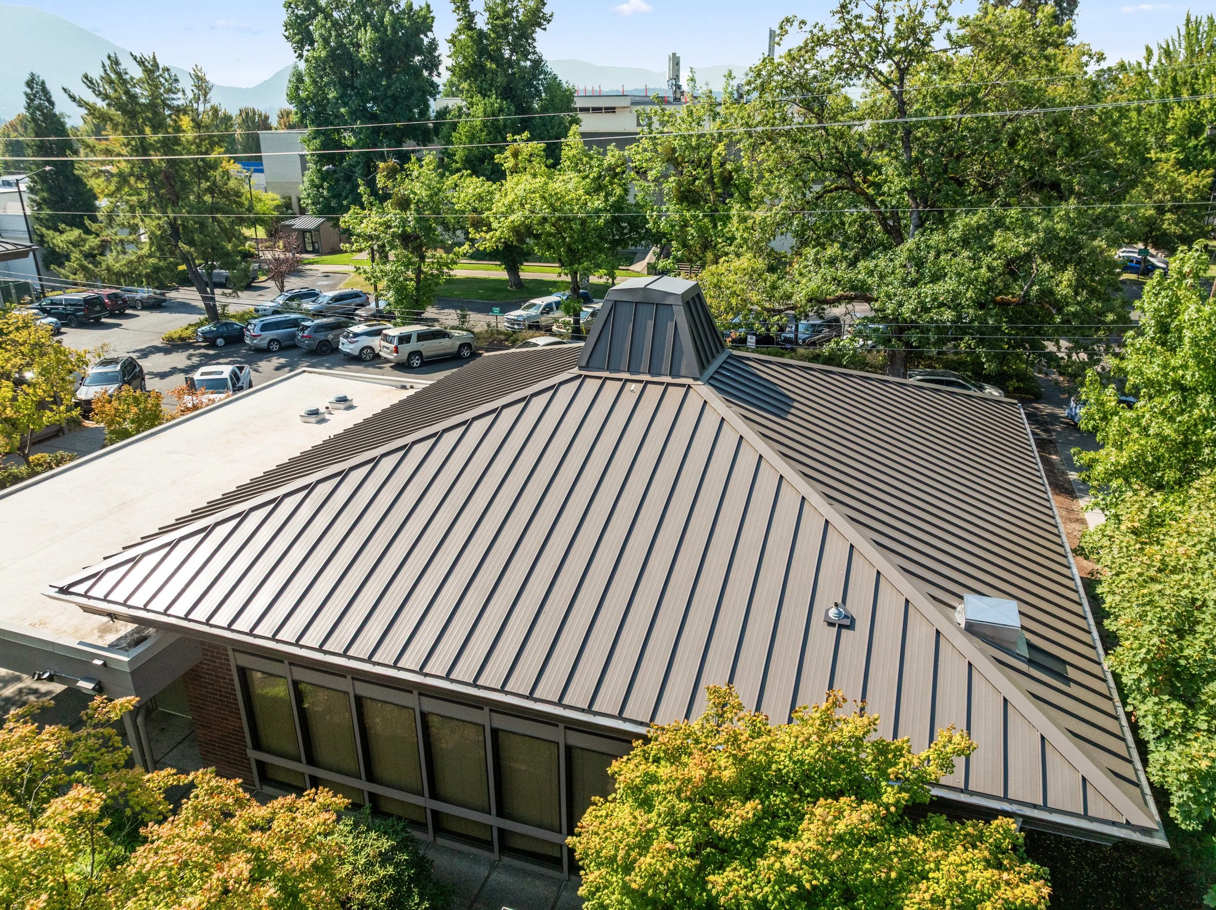 Our team delivered a comprehensive solution that replaced steep and low-slope roof systems with standing seam metal and EPDM roofing, replaced roof drainage systems, introduced new fall protection, and replaced damaged soffit materials with more durable alternatives. In alignment with current energy code requirements, we also incorporated new insulation at roof areas with insulation above the deck, bringing the facility into compliance and improving thermal performance. At the council chamber, new roof sheathing was added to create a diaphragm for seismic resilience. The result is a more durable, efficient, and code-compliant civic facility.